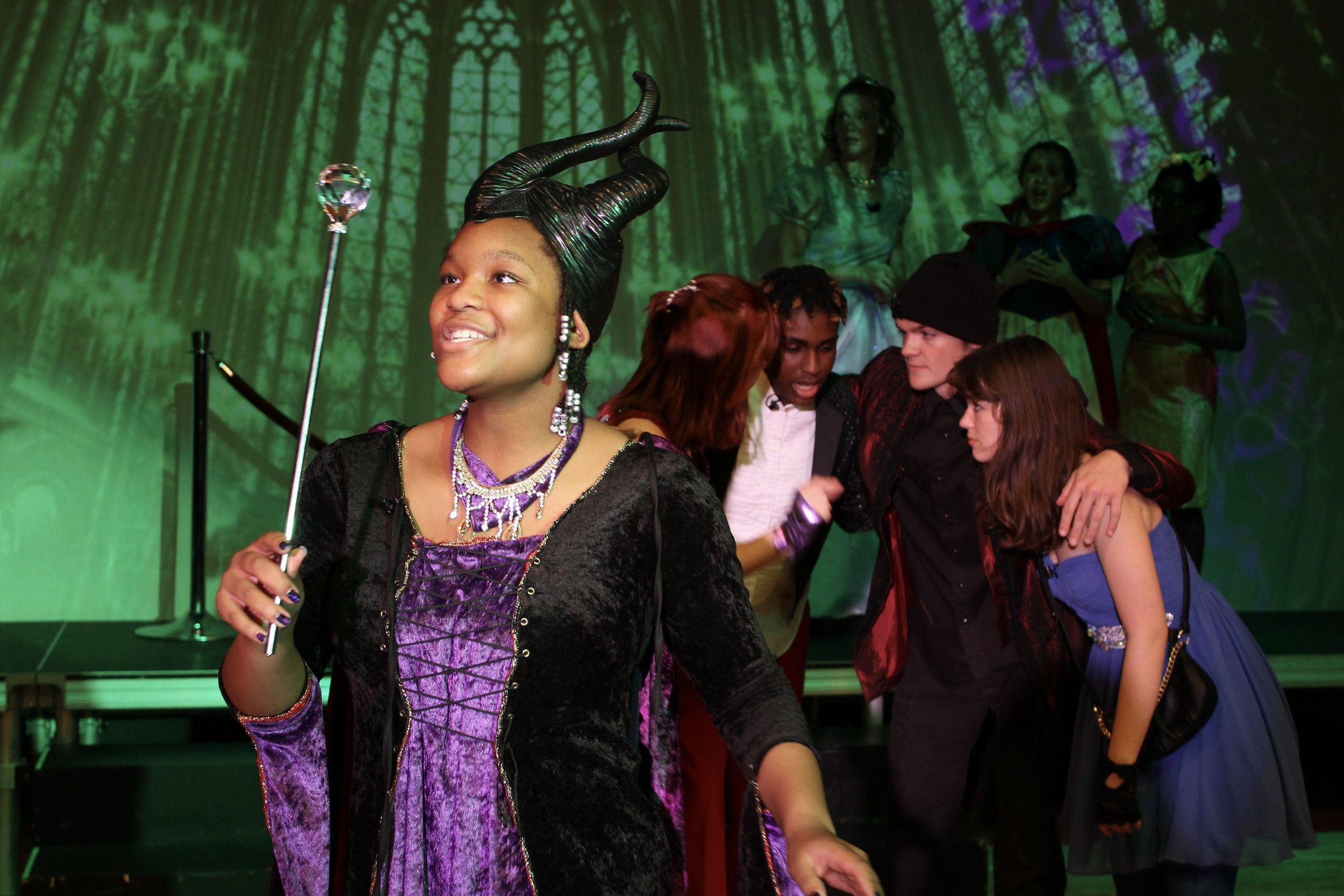 Brianna-Marie Mraz as Maleficent and the Lundstrum cast of Disney’s Descendants