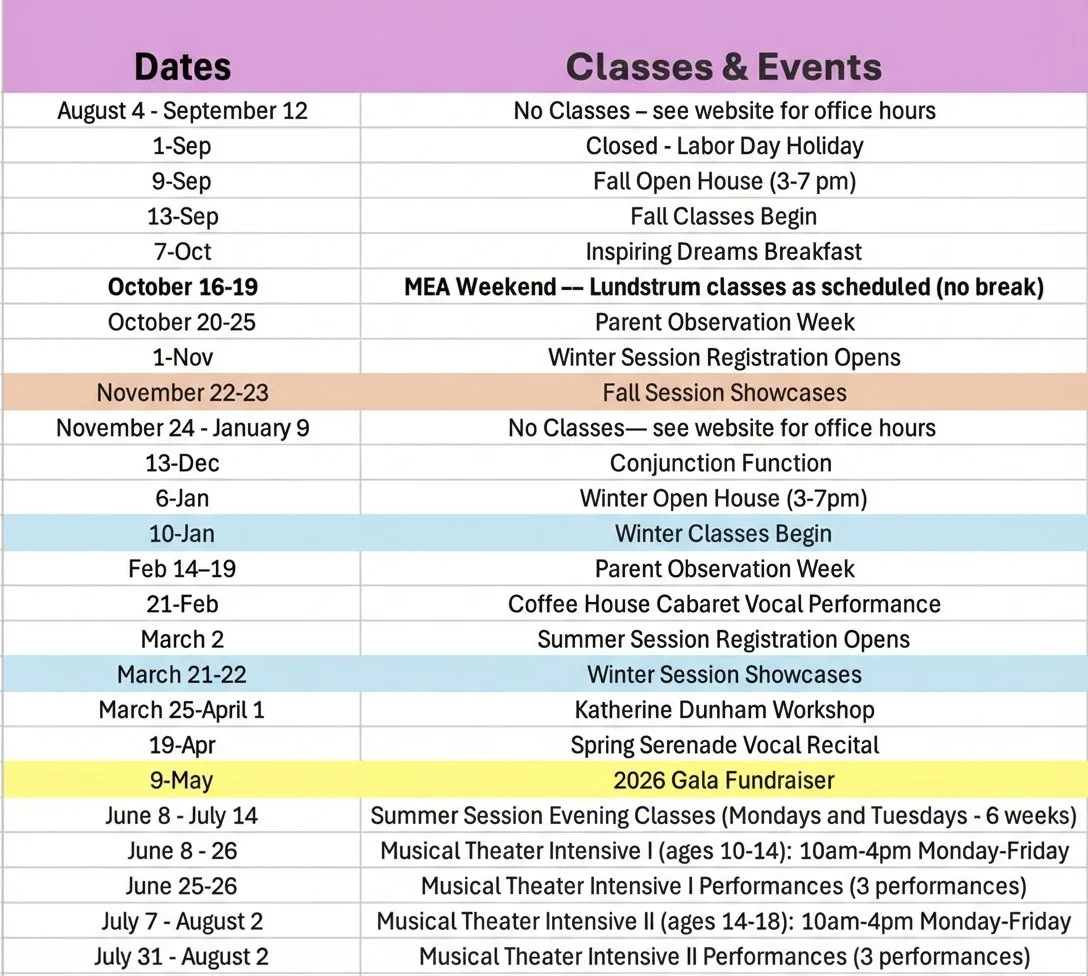 Winter Classes: January 10, 2026 -March 22, 2026